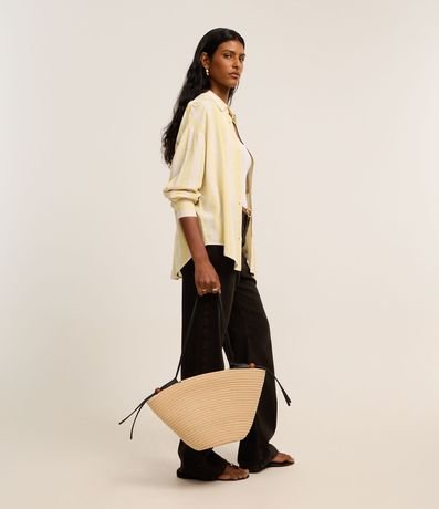 O viscolinho é uma mistura de linho e viscose. O material proporciona toque macio, caimento fluido e um visual sofisticado à peça. Além disso, traz conforto e leveza ao look, perfeito para os dias atuais.