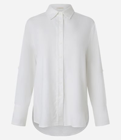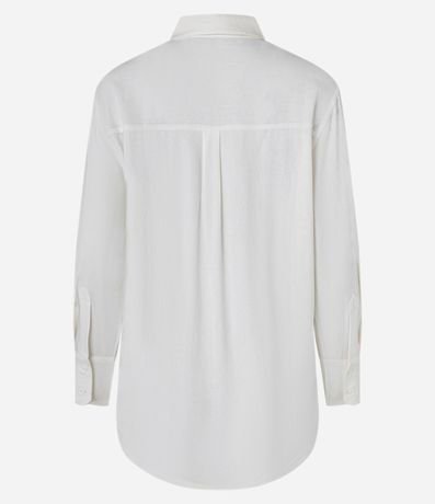 Ref: Camisa de mangas longas confeccionada em viscolinho com colarinho na gola e abotoamento frontal.
