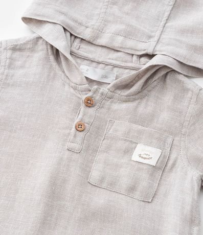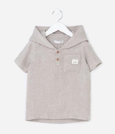 Ref: Camisa infantil confeccionada em viscolinho mais sustentável através de boas práticas ambientais, no modelo bata. Possui capuz, botões na gola, manga curta, bolsinho e sem estampa.