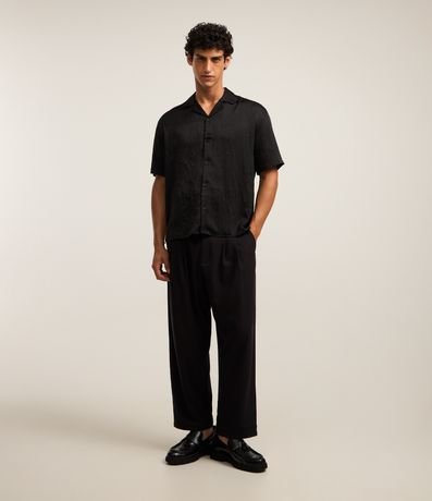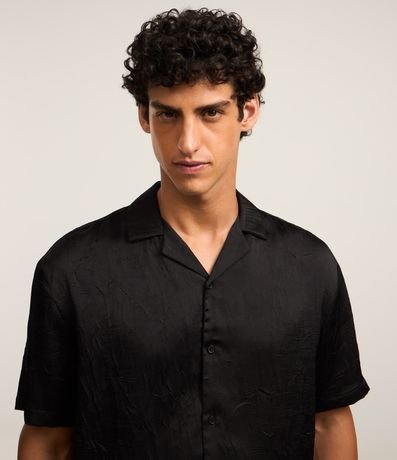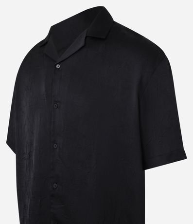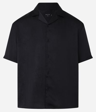 Ref: Camisa masculina no modelo boxy, gola com lapela, abotoamento frontal, manga curta com efeito acetinada.