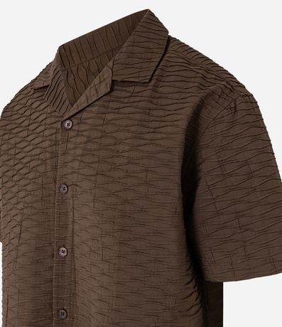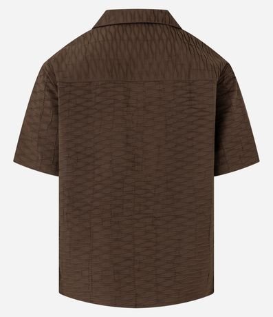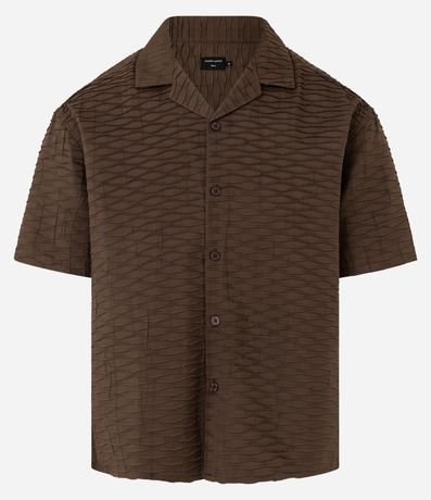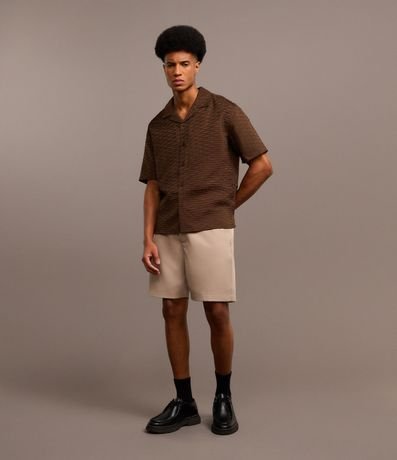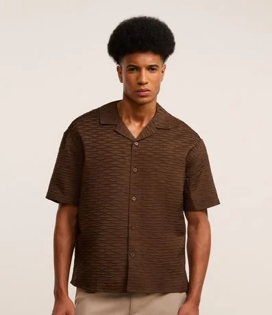 Ref: Camisa masculina confeccionada em poliéster, no modelo boxy. Possui gola lapela, manga curta, abotoamento frontal e textura bowling.
