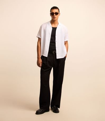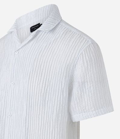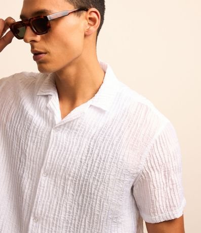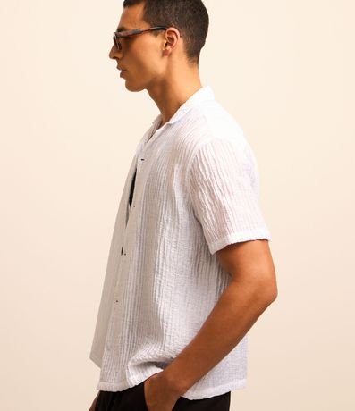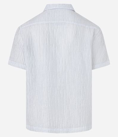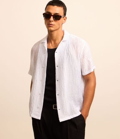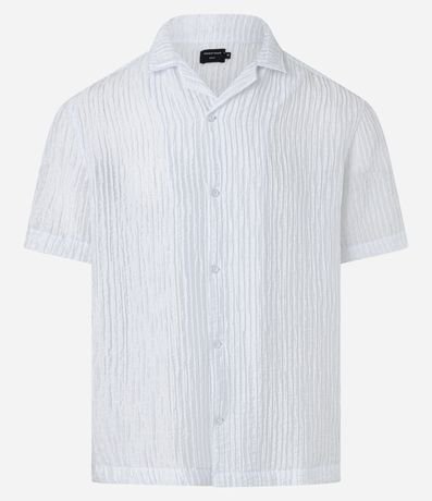 Camisa masculina com gola lapela, abotoamento frontal, manga curta. Peça no modelo boxy com textura.