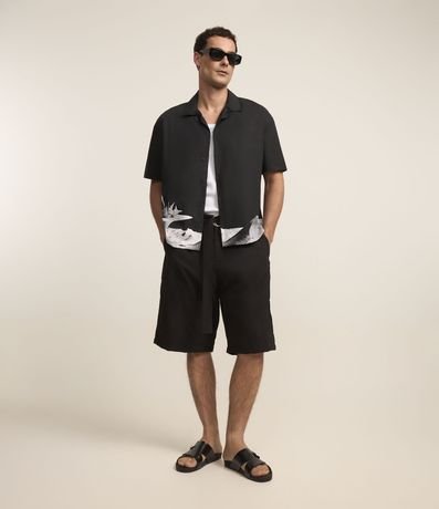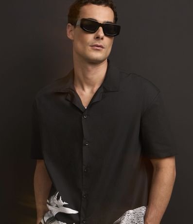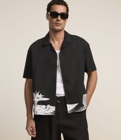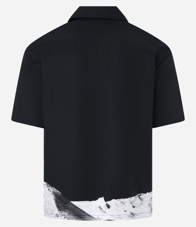 Ref: Camisa masculina confeccionada em algodão, gola colarinho, abotoamento frontal, manga curta. Peça no modelo boxy em alfaiataria com estampa surrealista na barra.