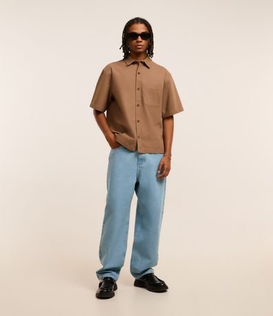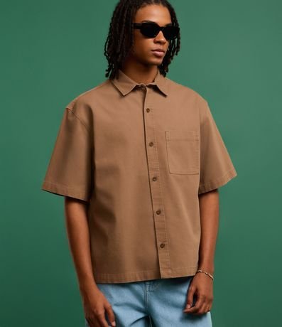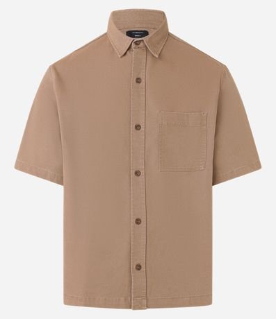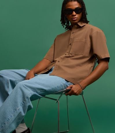 Ref: Camisa masculina confeccionada em algodão mais sustentável, no modelo boxy, possui gola colarinho, manga curta, abotoamento frontal e texturizada.