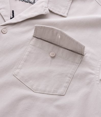 Ref: Camisa boxy confeccionada em algodão certificado BCI, com textura macia e toque confortável. Possui gola colarinho, mangas curtas, bolsos frontais e lettering bordado, garantindo estilo urbano e moda responsável.