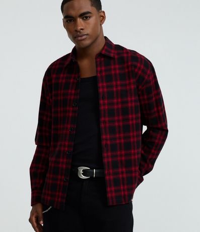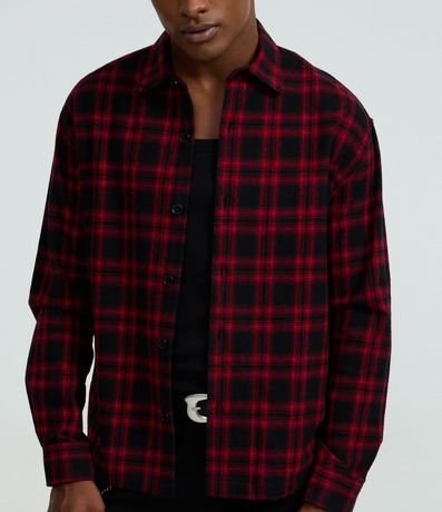 Camisa Boxy em Flanela com Estampa Xadrez e Manga Longa