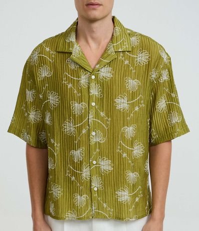 Ref: Camisa boxy masculina traz leveza e estilo com textura e estampa floral. Confeccionada em liocel, fibra natural com responsabilidade ambiental.