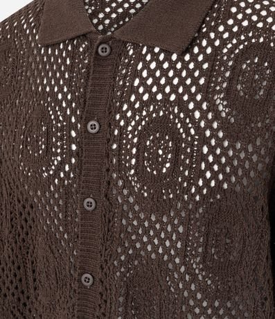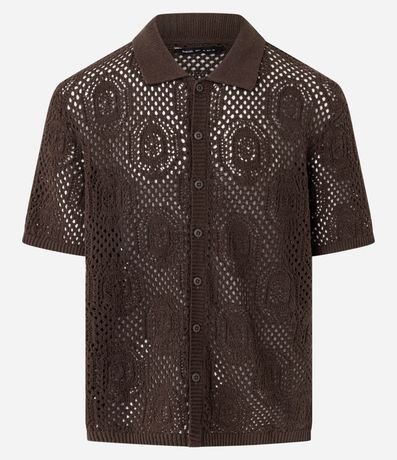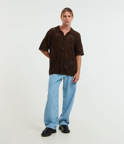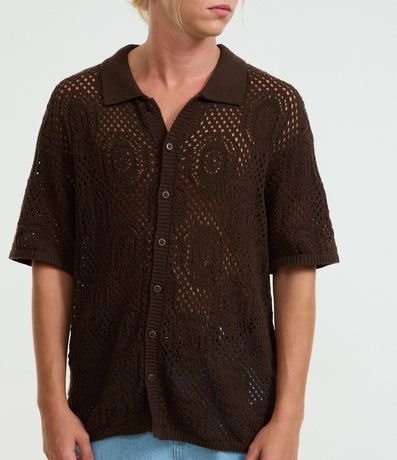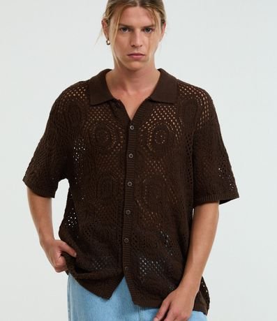 Ref: Camisa masculina confeccionada em tricô mais sustentável, no modelo boxy. Possui gola colarinho, manga curta, abotoamento frontal e texturizada.