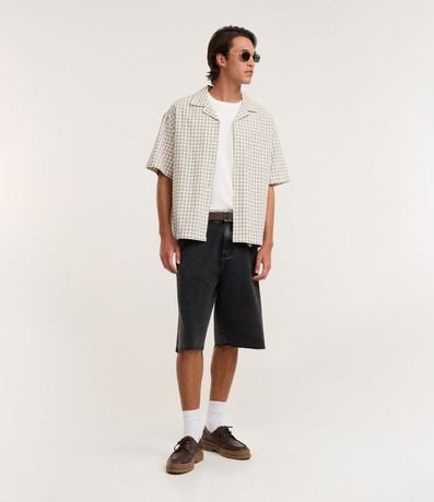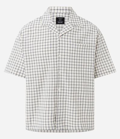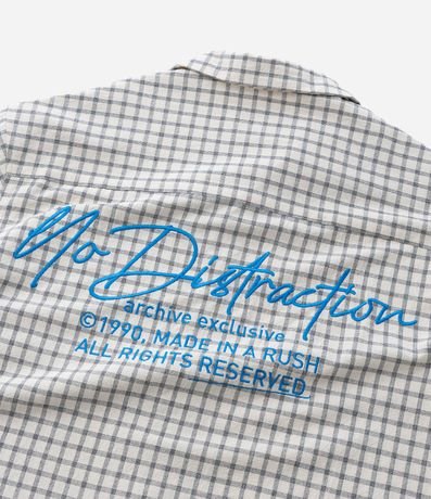 Ref: Camisa masculina em tricoline xadrez texturizada traz bordado nas costas e gola colarinho para um visual cheio de personalidade. Feita em algodão certificado BCI, oferece conforto, frescor e responsabilidade ambiental em cada detalhe.