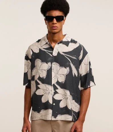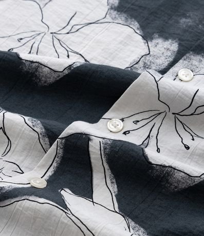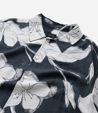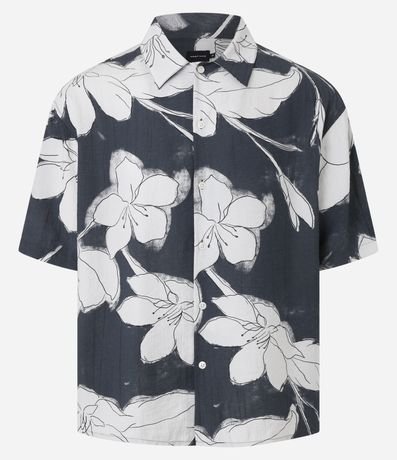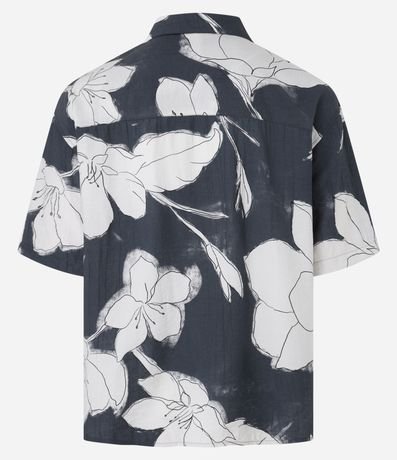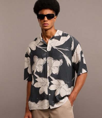 Ref: Camisa masculina confeccionada em viscose mais sustentável no modelo boxy, possui gola colarinho, manga curta, abotoamento frontal, estampa floral com efeito nanquim texturizada.