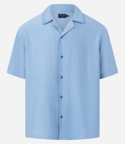 Ref: Camisa masculina confeccionada em viscose no modelo boxy, gola colarinho, abotoamento frontal, manga curta e textura.