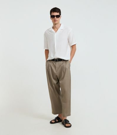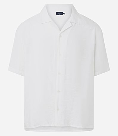 Camisa masculina boxy com manga curta e abotoamento frontal, confeccionado em viscose texturizada, com gola bowling. leve e perfeita para compor looks modernos, urbanos e cheios de personalidade.