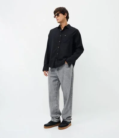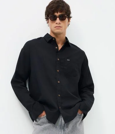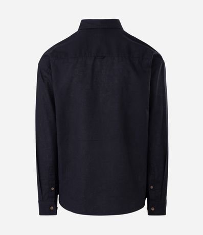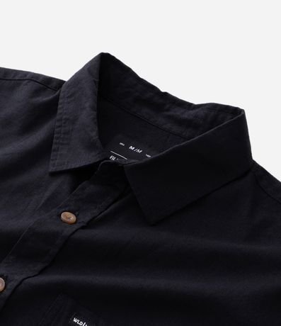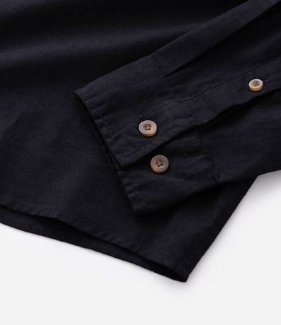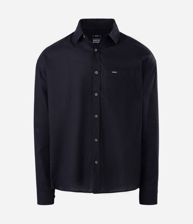 Ref: Camisa masculina em cânhamo, lisa, gola colarinho, bolso, abotoamento frontal.