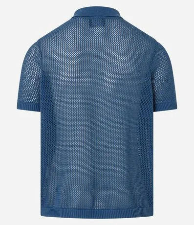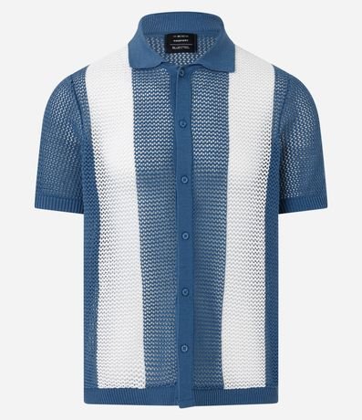 Camisa masculina confeccionada em poliéster com gola colarinho, abotoamento frontal, manga curta. Peça no modelo comfort com textura em tricô.