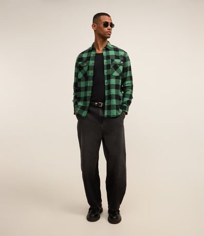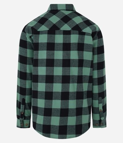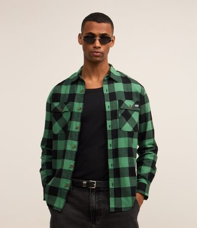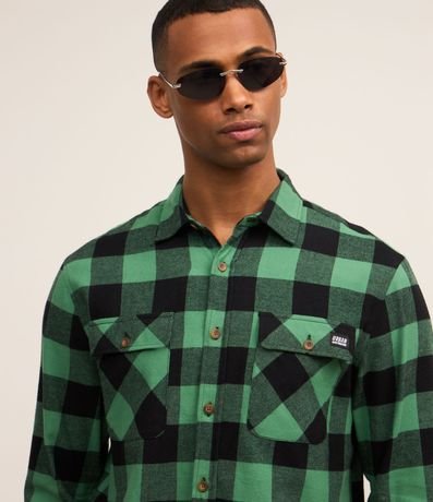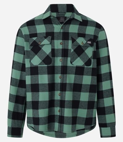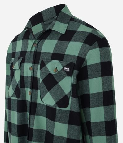 Camisa comfort em algodão mais sustentável com gola colarinho, abotoamento frontal, com bolsos frontais e estampa xadrez contrastante.