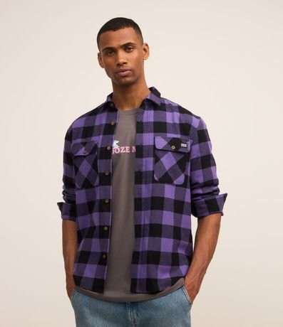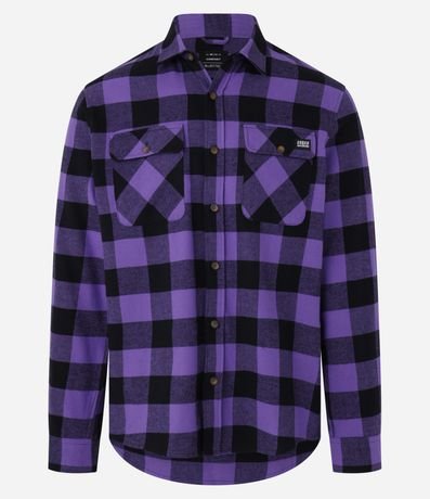 Camisa comfort em algodão mais sustentável com gola colarinho, abotoamento frontal, com bolsos frontais e estampa xadrez contrastante.
