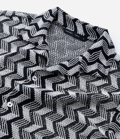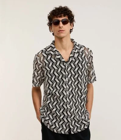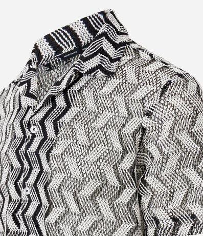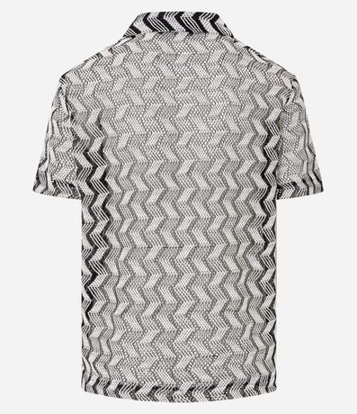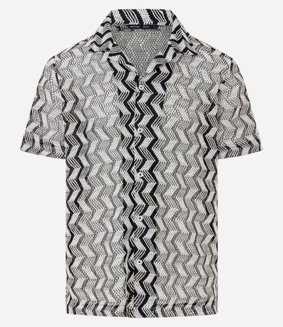 Ref: Camisa masculina confeccionada em poliéster mais sustentável, no modelo comofrt. Possui gola lapela, manga curta, abotoamento frontal, estampa zig zag e texturizada.