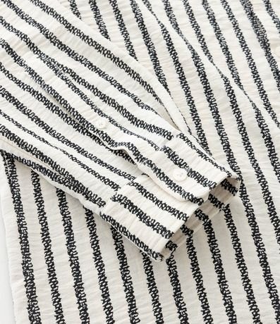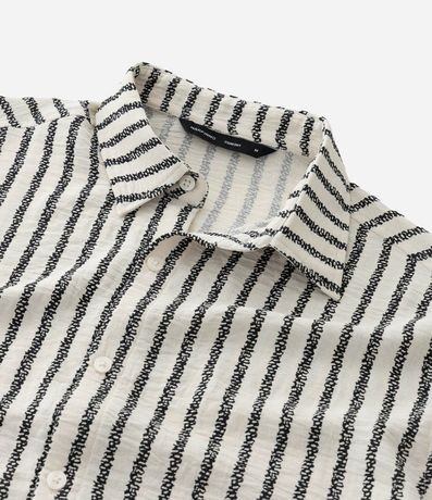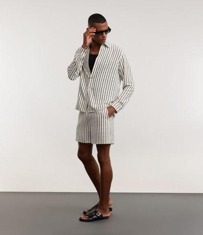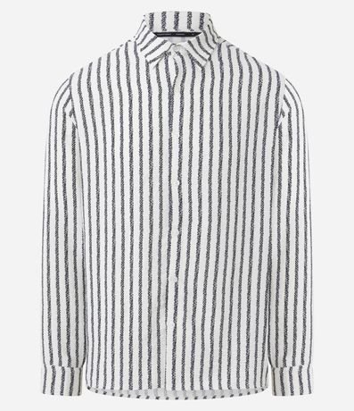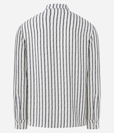 Ref: Camisa masculina manga longa confeccionada em poliéster alfaiatado com toque leve e caimento elegante. Modelo comfort com gola colarinho, abotoamento frontal e listras verticais, garantindo visual sofisticado e versátil para compor looks formais ou casuais.