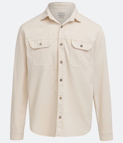 Camisa Comfort em Algodão com Bolsos Lapela e Abotoamento