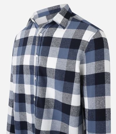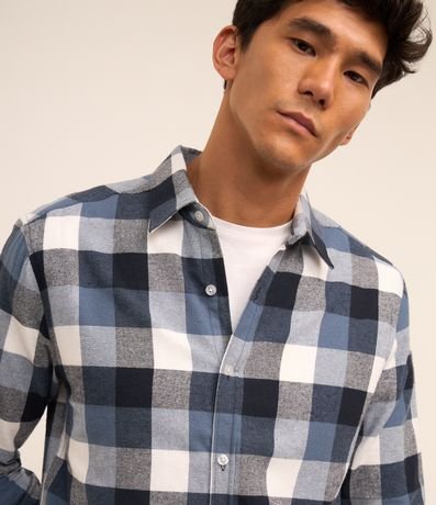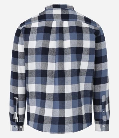 Camisa masculina, modelo comfort, confeccionada em algodão mais sustentável, com gola colarinho, mangas longas, abotoamento e estampa xadrez.