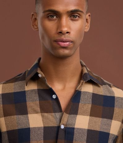 Ref: Camisa masculina, modelo comfort, confeccionada em algodão mais sustentável, com gola colarinho, mangas longas, abotoamento e estampa xadrez.