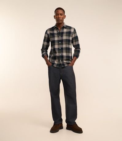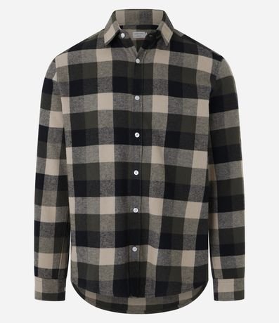 Ref: Camisa masculina, modelo comfort, confeccionada em algodão mais sustentável, com gola colarinho, mangas longas, abotoamento e estampa xadrez.