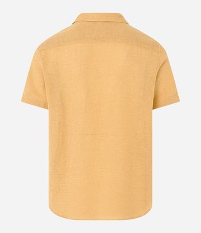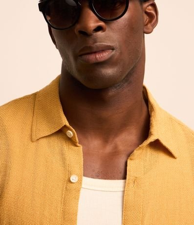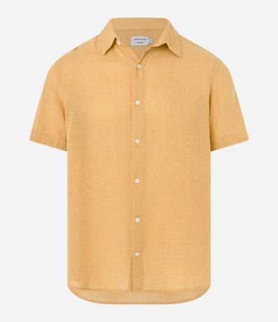 Ref: Camisa masculina confeccionada com algodão mais sustentável, gola colarinho, abotoamento frontal, manga curta. Peça no modelo comfort com textura.