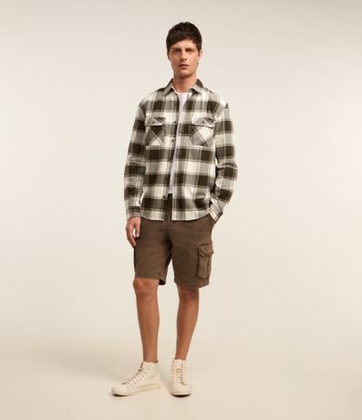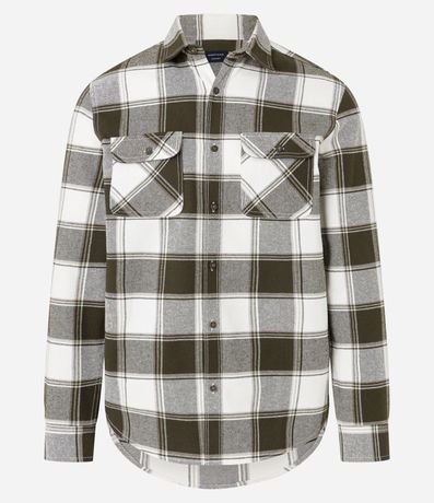 Ref: Camisa comfort masculina, confeccionada em flanela mais sustentável, com gola colarinho, mangas longas, abotoamento, bolsos frontais com lapela e estampa xadrez.