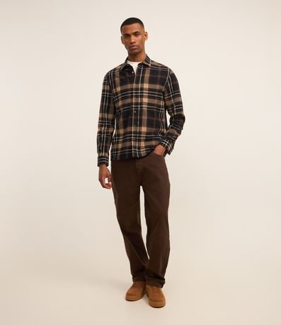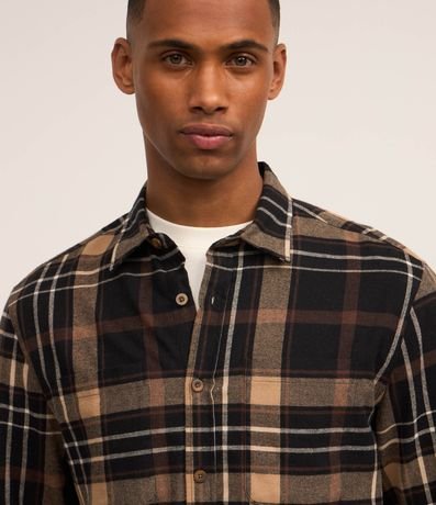 Camisa masculina confeccionada em algodão mais sustentável, gola colarinho, abotoamento frontal. Peça clássica em flanela com estampa xadrez no modelo comfort.