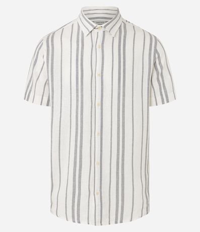 Ref: Camisa comfort masculina, com gola colarinho, mangas curtas, abotoamento frontal e estampa de listras rústicas. Confeccionada em linho mais sustentável, a peça além de garantir conforto, oferece um visual cheio de estilo e elegância.