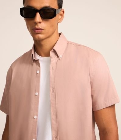 Camisa Comfort em Oxford com Gola Colarinho e Manga Curta