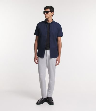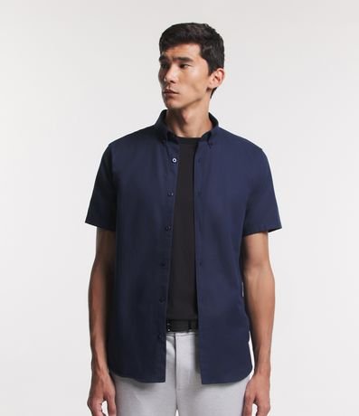 Camisa Comfort em Oxford com Gola Colarinho e Manga Curta