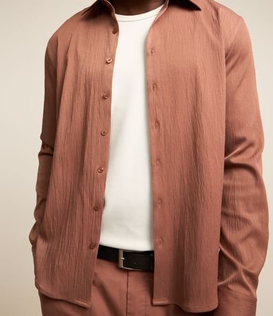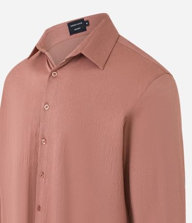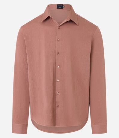 Ref: Camisa masculina, modelo comfort, confeccionada em poliéster e viscose, gola colarinho, abotoamento e manga longa. Peça contém textura vertical.