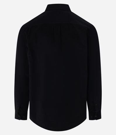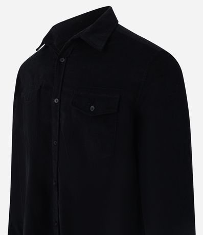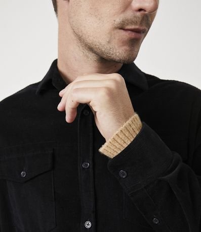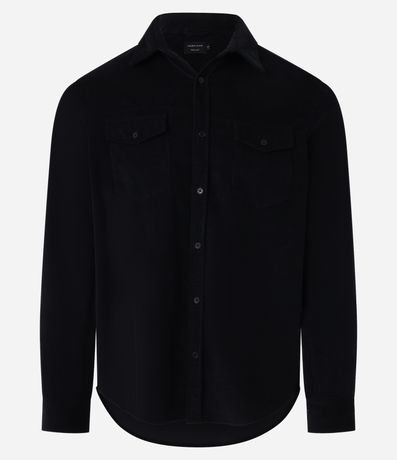 Camisa comfort masculina, confeccionada em veludo, com gola colarinho, mangas longas e bolsos frontais.