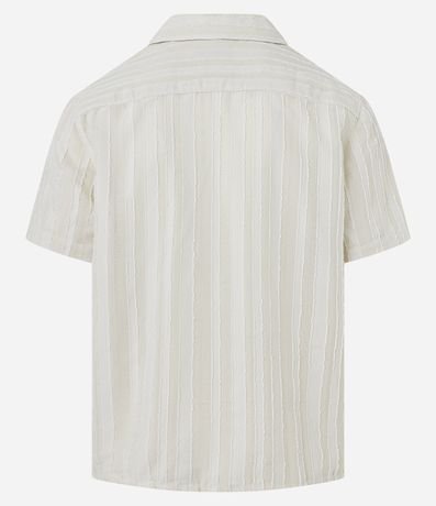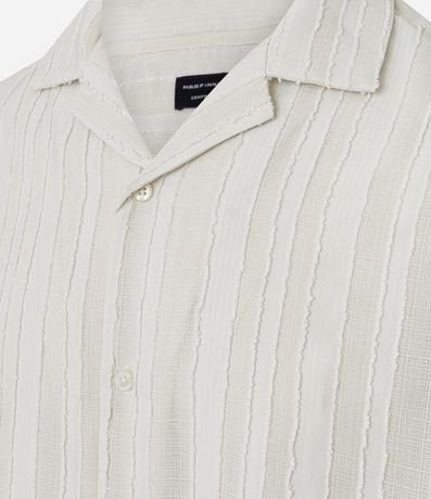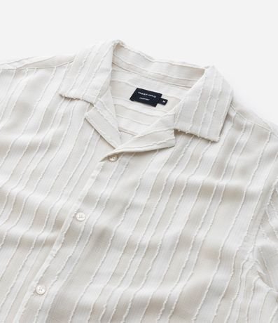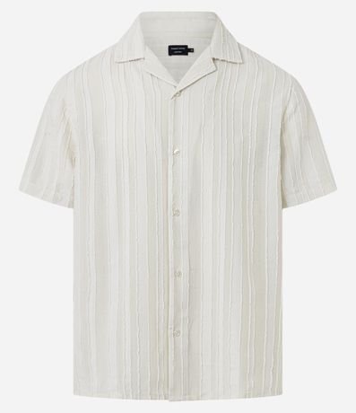 Ref: Camisa masculina comfort com textura e listras, gola lapela e abotoamento frontal. Ideal para compor looks casuais com toque moderno. Produzida em tecido sintético leve e resistente.