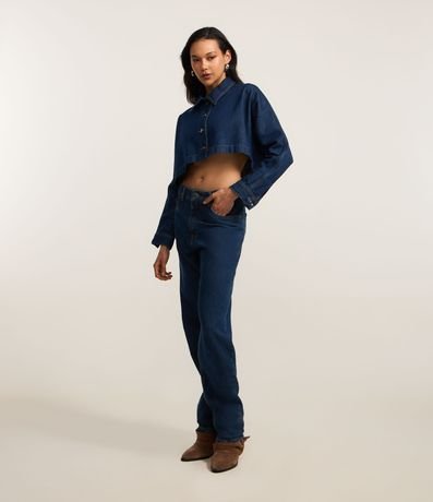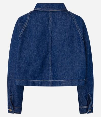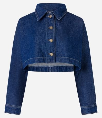Ref: Camisa cropped com manga longa, confeccionada em jeans com algodão bci mais sustentável e abotoamento frontal.