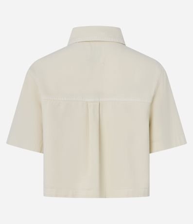 Camisa Cropped em Sarja com Bolsos e Lapela