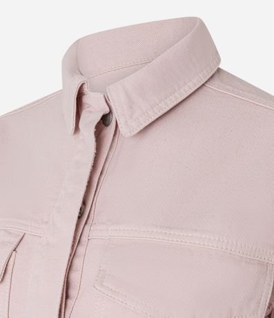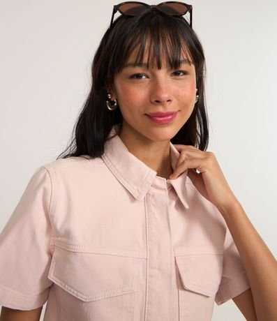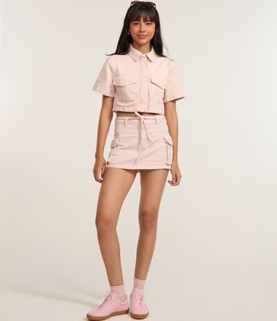 Ref: Camisa feminina de modelo cropped, confeccionada em sarja. Possui gola colarinho, mangas curtas, fechamento por botões e bolsos com lapela. A peça é confeccionada com boas práticas ambientais e algodão certificado bci.