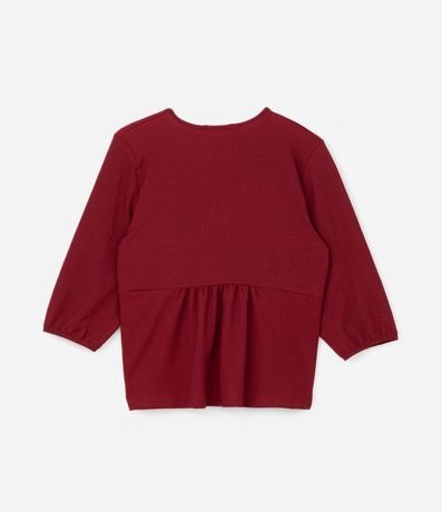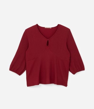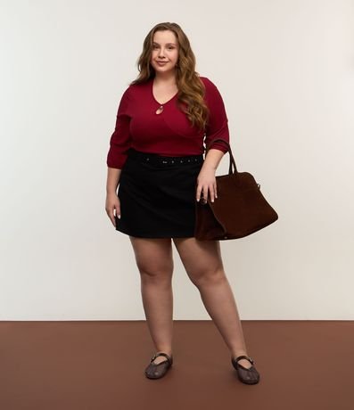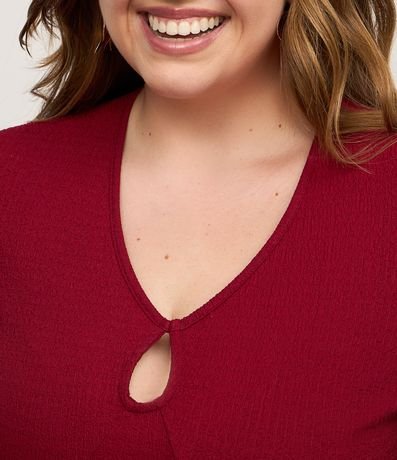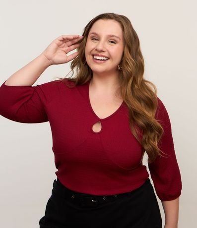 Ref: Camisa feminina Curve & Plus Size confeccionada com elastano que permite mais elasticidade durante seu uso. Peça com decote em v, detalhes de cota e recortes, manga 3/4 com textura.