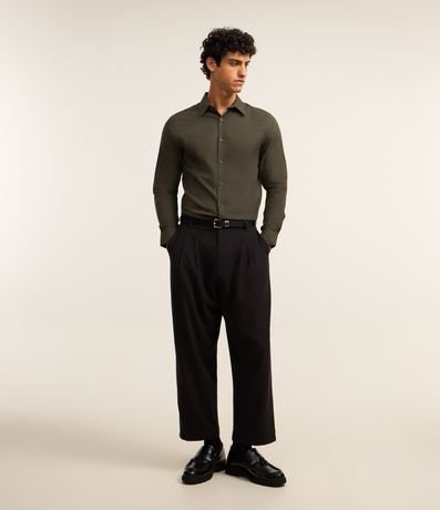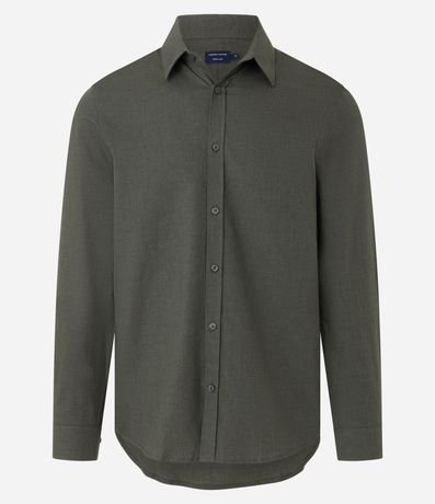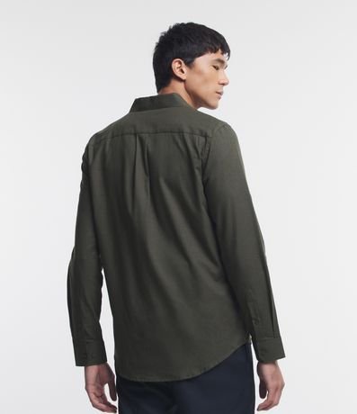 Camisa manga longa, confeccionada em tricoline, botões frontais e sem estampa.