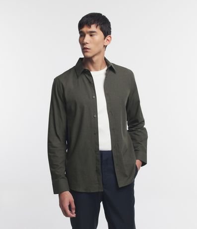 Camisa em Algodão com Botões Frontais e Efeito Mescla