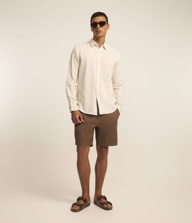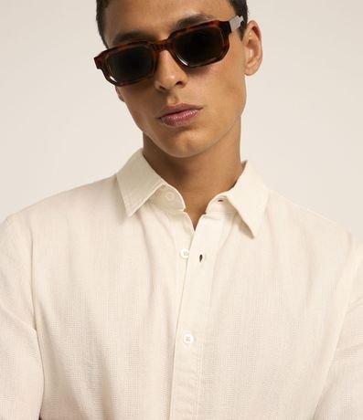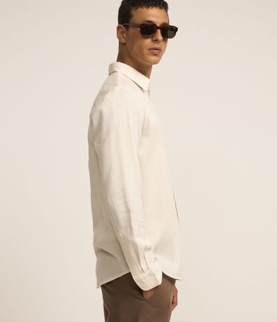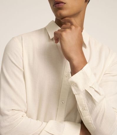 Ref: Camisa masculina confeccionada em material mais sustentável, gola colarinho, abotoamento frontal, manga longa. Peça com textura em listras finas verticais.