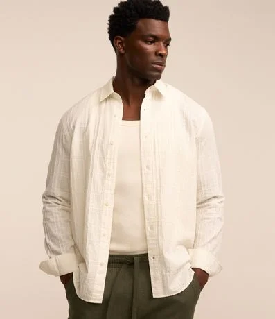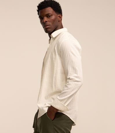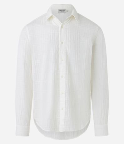 Ref: Camisa masculina, confeccionada em algodão, gola colarinho, abotoamento frontal, manga longa. Peça com textura xadrez.