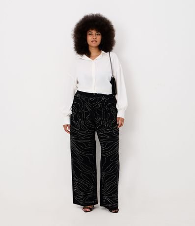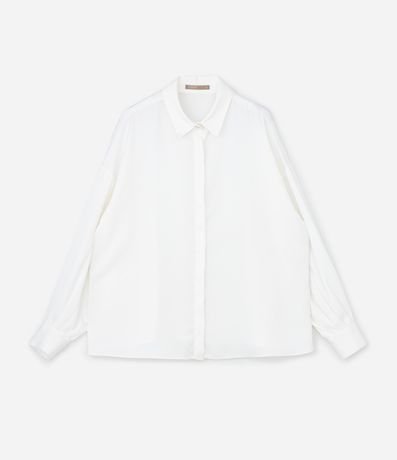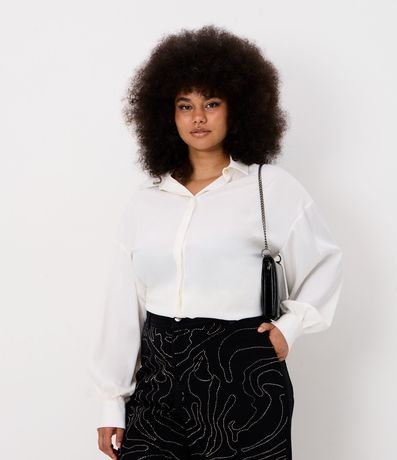 Camisa em Cetim com Manga Bufante Curve & Plus Size