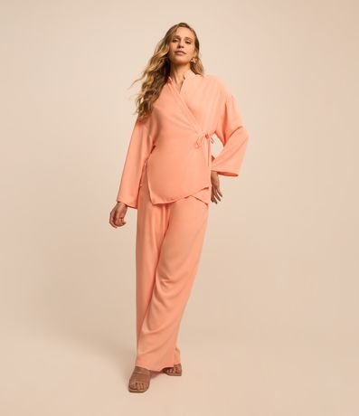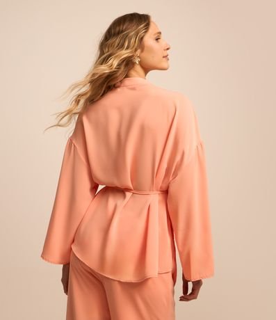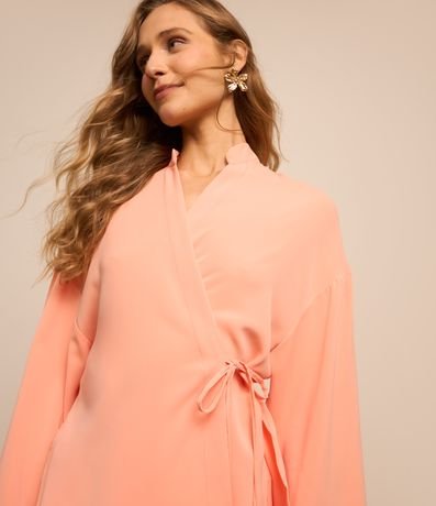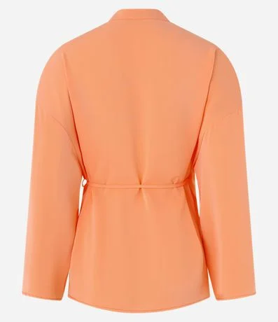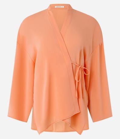 Ref: Camisa confeccionada em crepe com decote transpassado com amarração lateral e mangas longas com texturas nos punhos. O design desta camisa remete a aparência de um kimono.