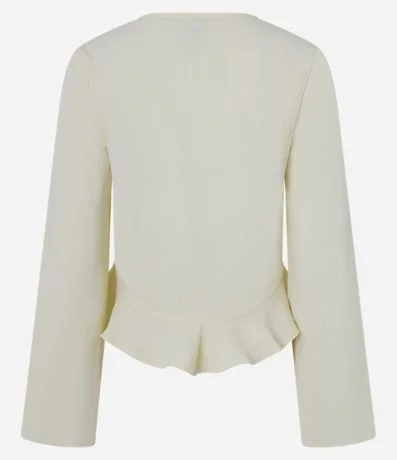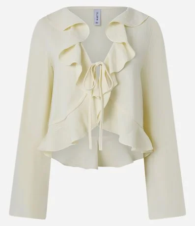 Ref: Camisa feminina manga longa, em crepe com efeito airflow que proporciona frescor e conforto térmico, com decote em V, amarradinho e babados frontais para um look mais estiloso!