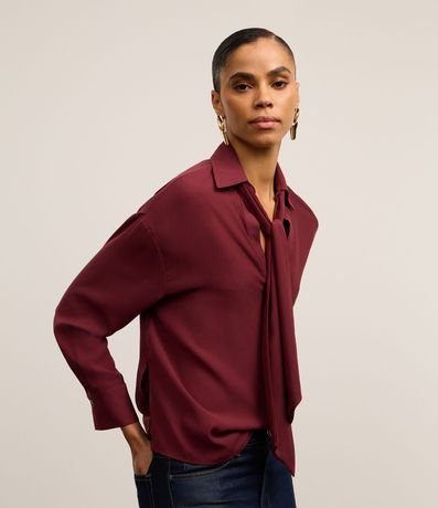Ref: Camisa de mangas longas, confeccionada em crepe, com gola laço. A roupa tem um laço bastante comprido, trazendo alta sofisticação para peça.