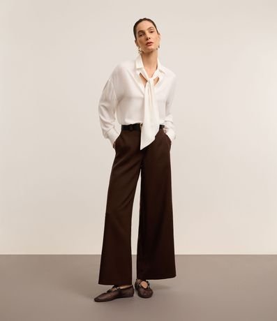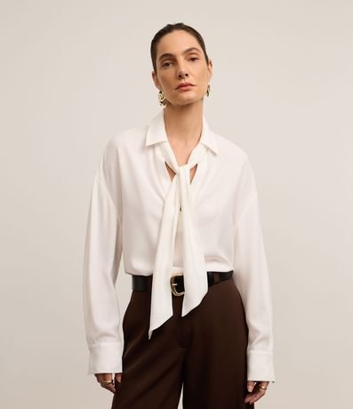 Ref: Camisa de mangas longas, confeccionada em crepe, com gola laço. A roupa tem um laço bastante comprido, trazendo alta sofisticação para peça.