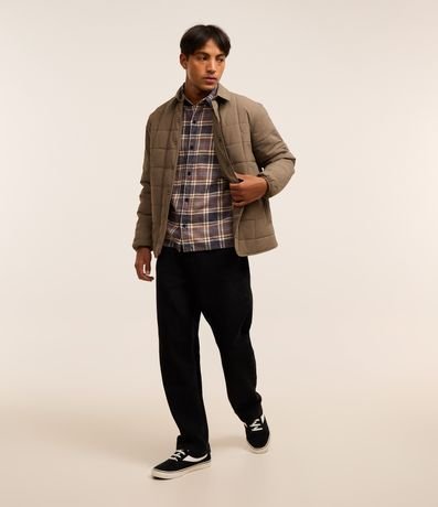 Camisa masculina confeccionada em flanela mais sustentável. Possui gola colarinho, manga longa, abotoamento frontal e estampa xadrez.