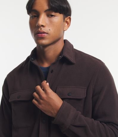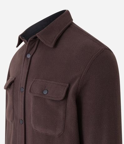 Camisa em flanela com toque em fleece, bolsos com lapela e botão no peito, fechamento por botões frontais e nos punhos.